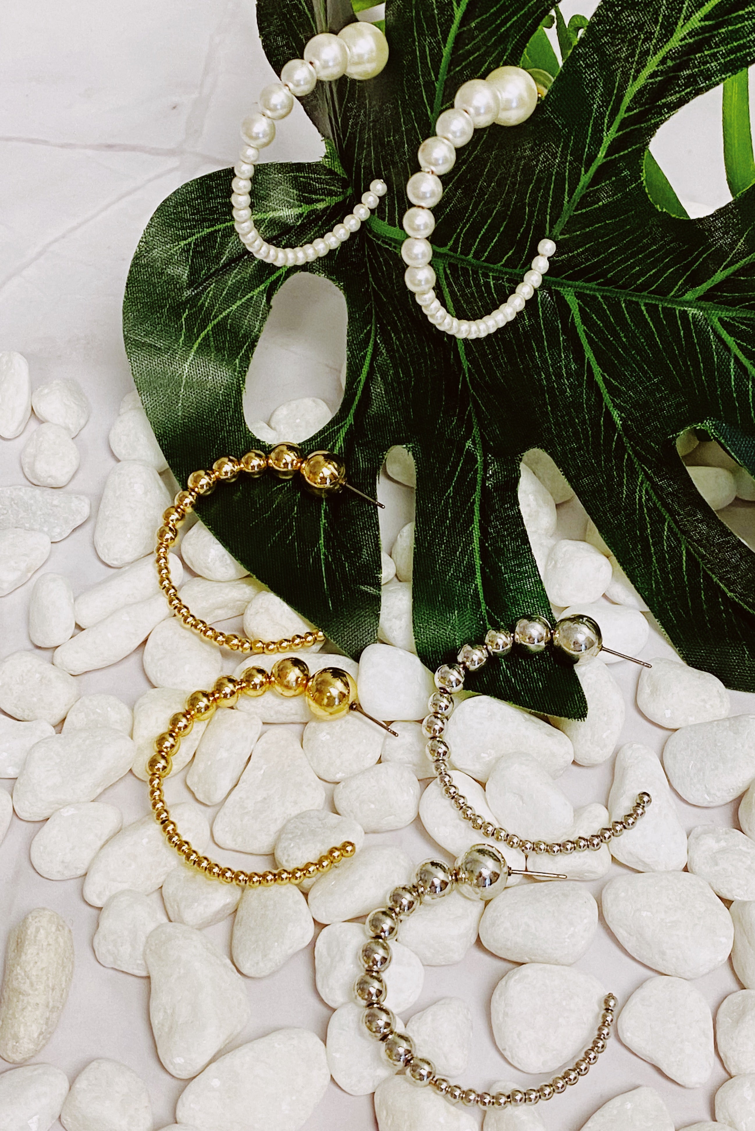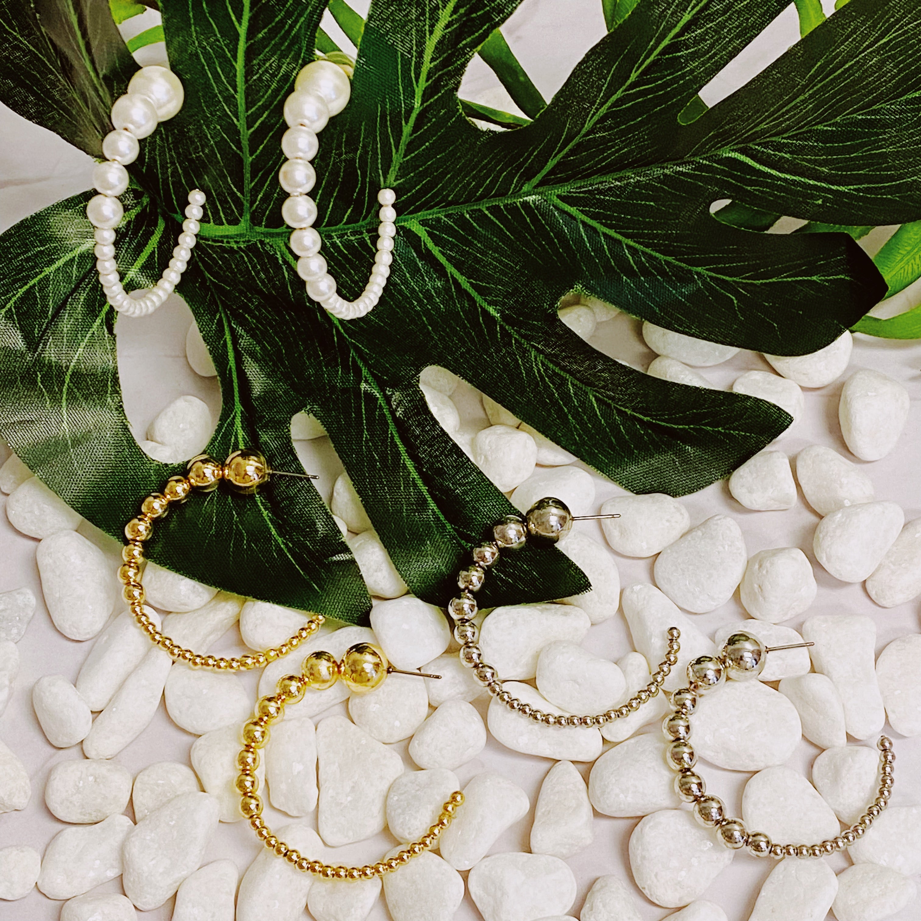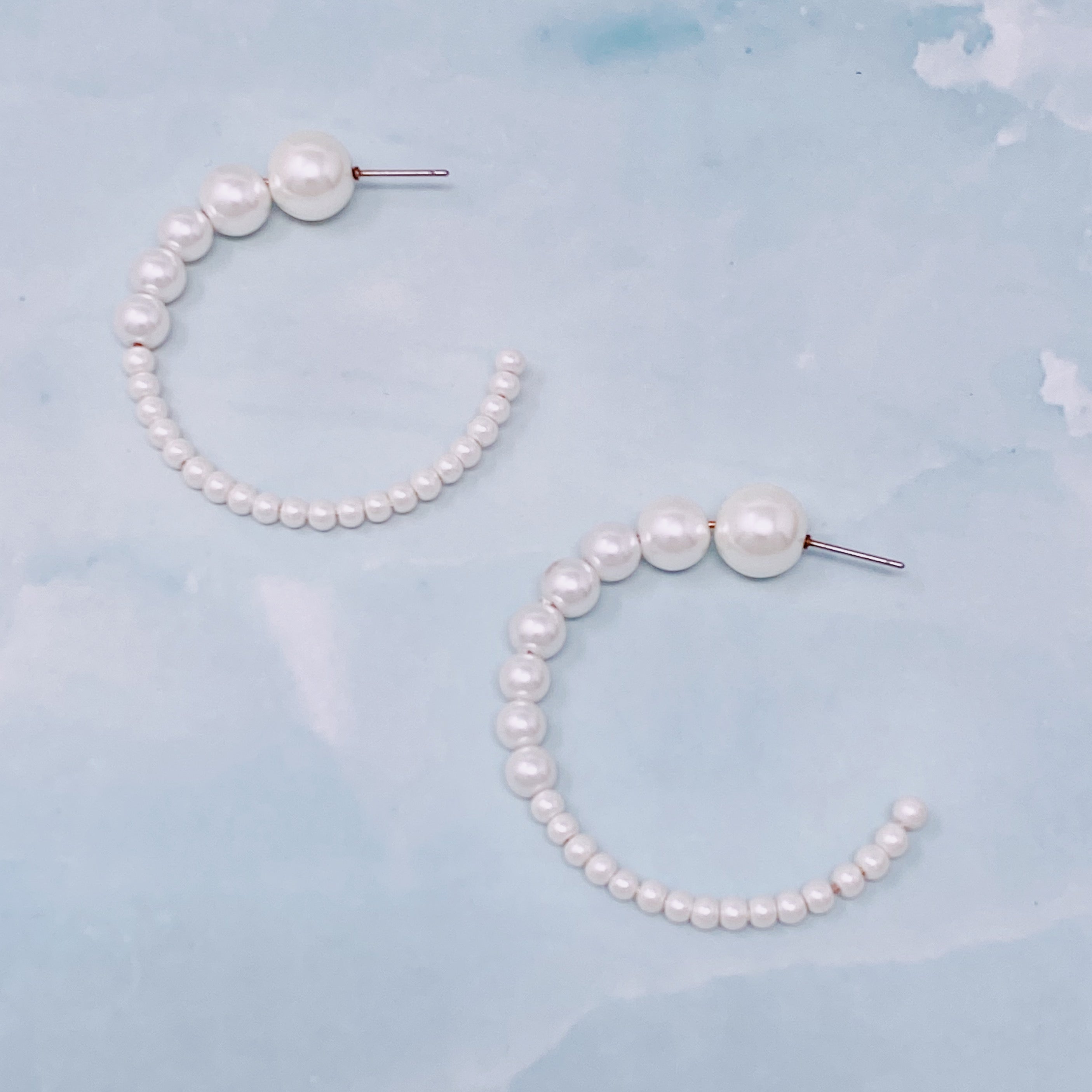 Enhance your wardrobe with this unique piece of jewelry - the Gradation Bauble Hoop Earrings. These earrings feature a beautiful arrangement of large and small beads in a hoop design that is both stylish and comfortable for all-day wear.