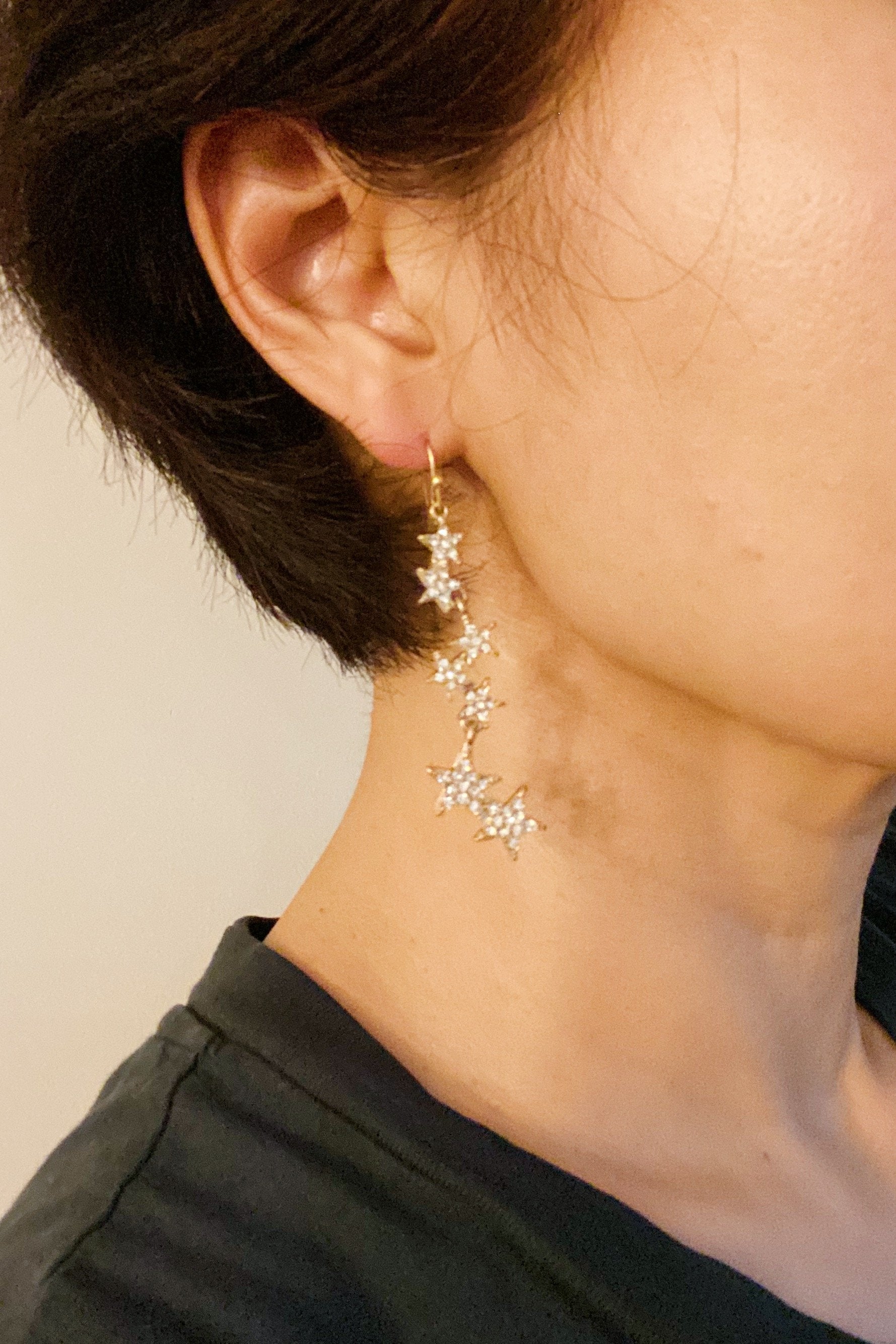 Different sizes of stars with shiny CZs around with fish hook. 0.75” X 2.5”.