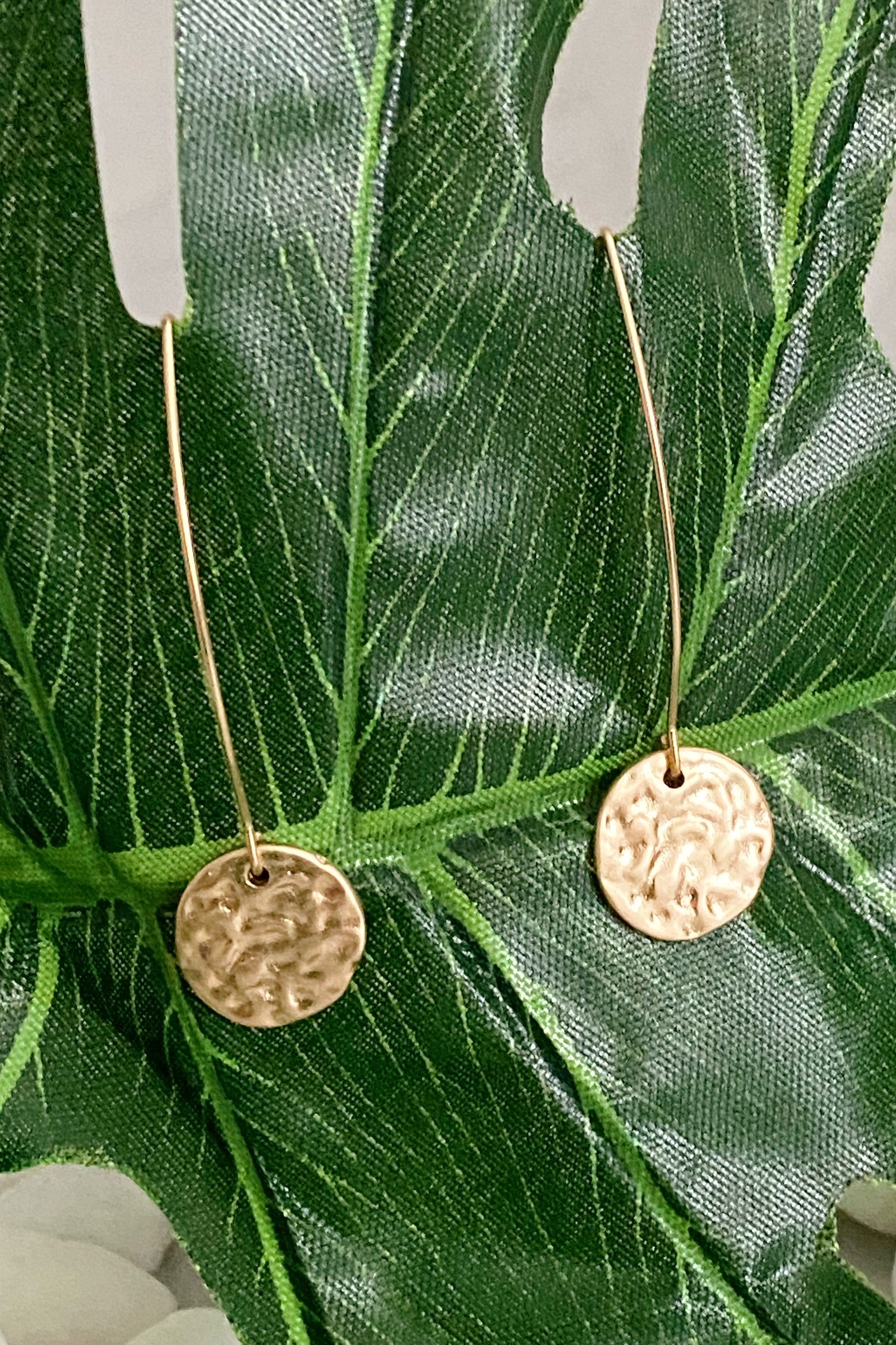 These Antique Moon Drop Earrings feature a fish hook with a unique antique finish disc for a stylish and lightweight look. Perfect for any occasion, their simple yet chic design is sure to elevate your look and make any ensemble stand out.