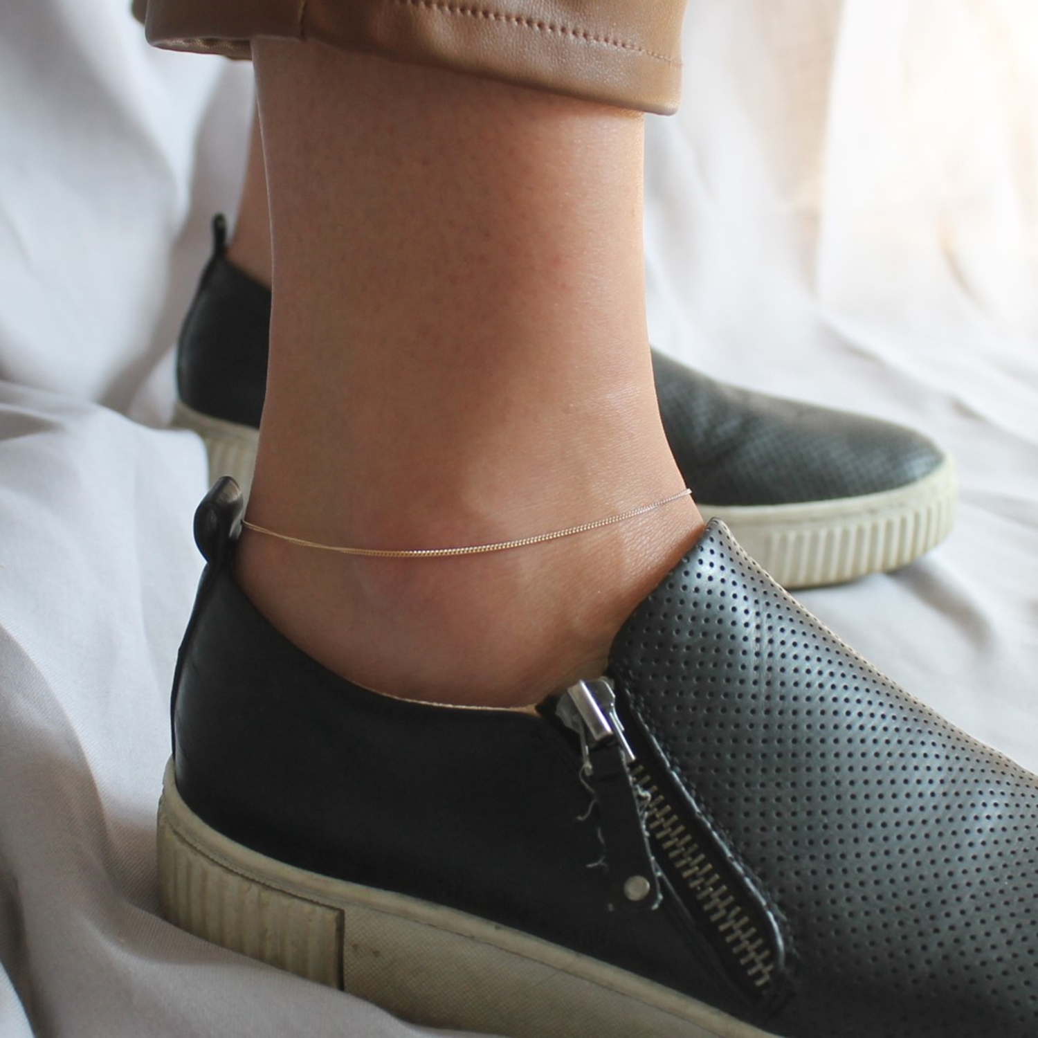 Perfect for wearing every day, this anklet is made from small curb chain links that have been carefully diamond faceted to create maximum sparkle. Available in a wide variety of finishes and sizes, this is a great piece on its own or as a complement to a layered stack!