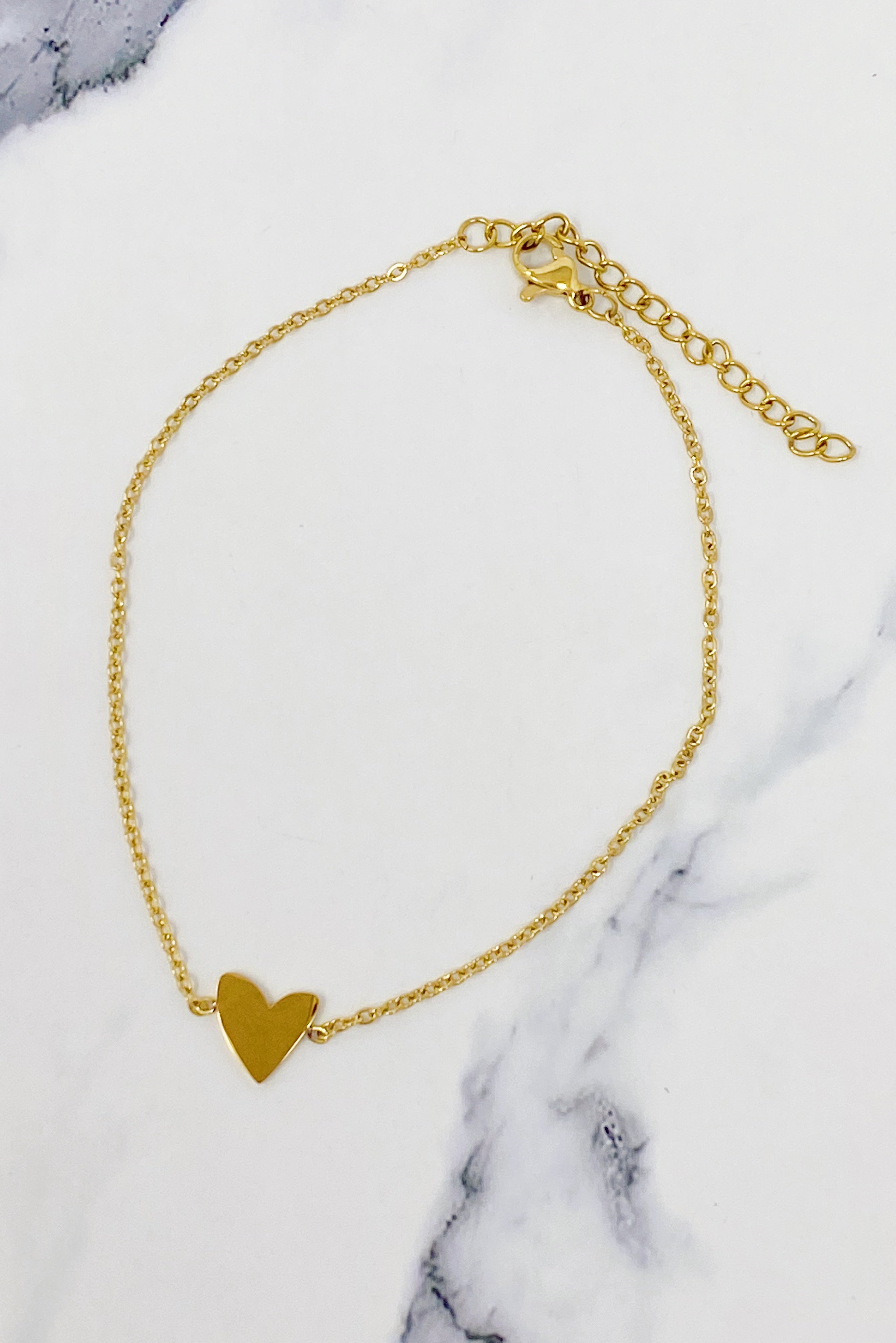Anklet with flattened polished heart charm. Simple with style, absolutely adorable!