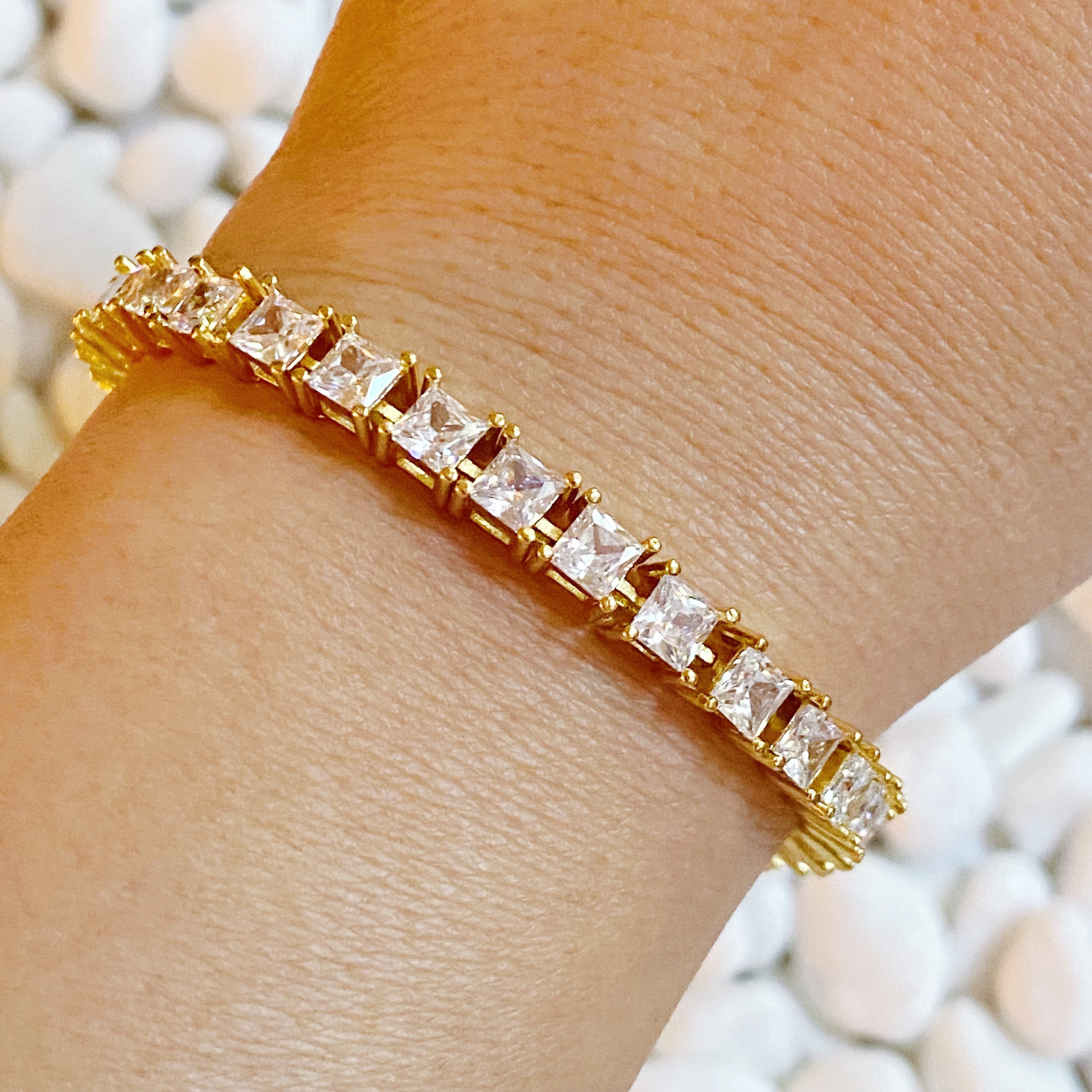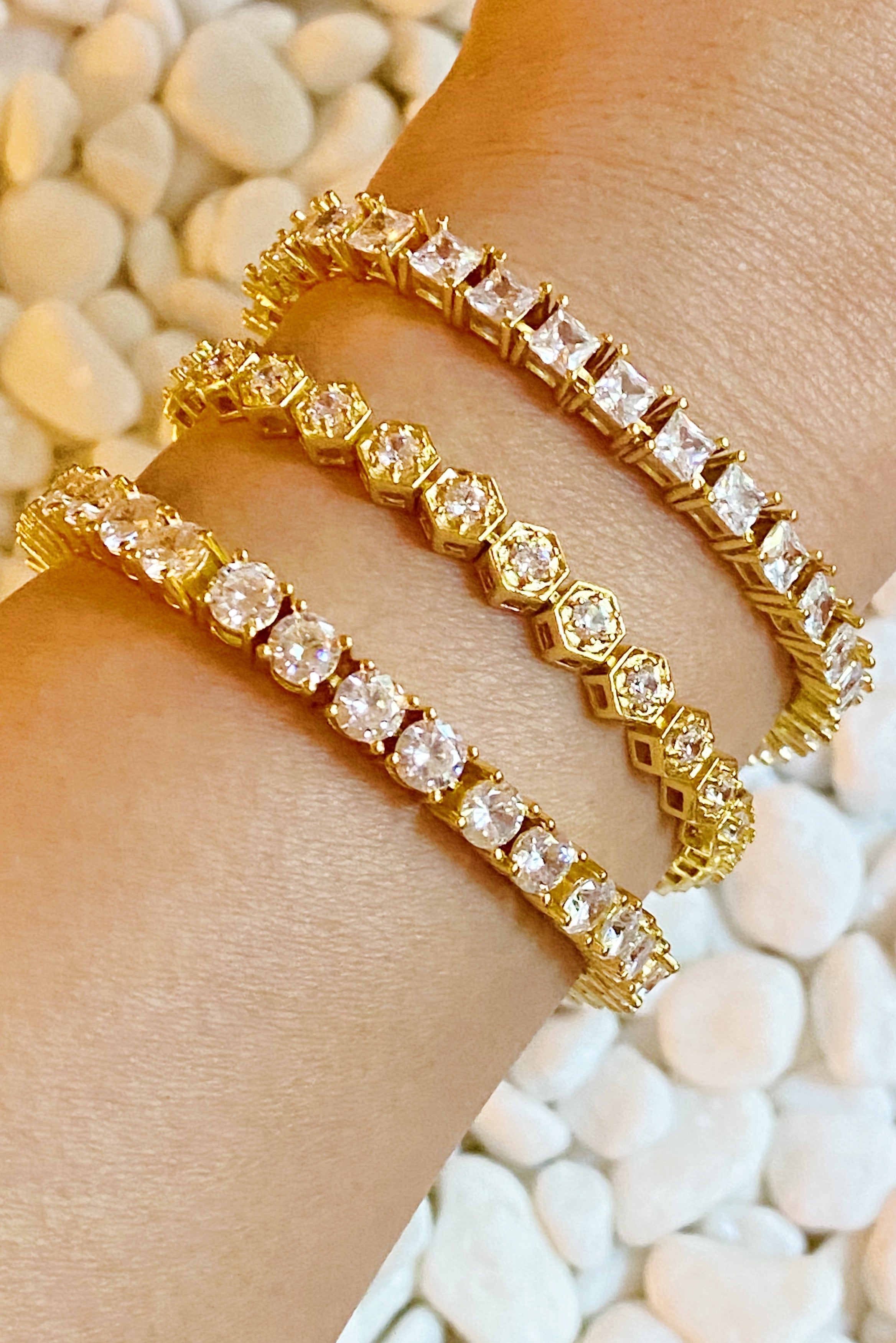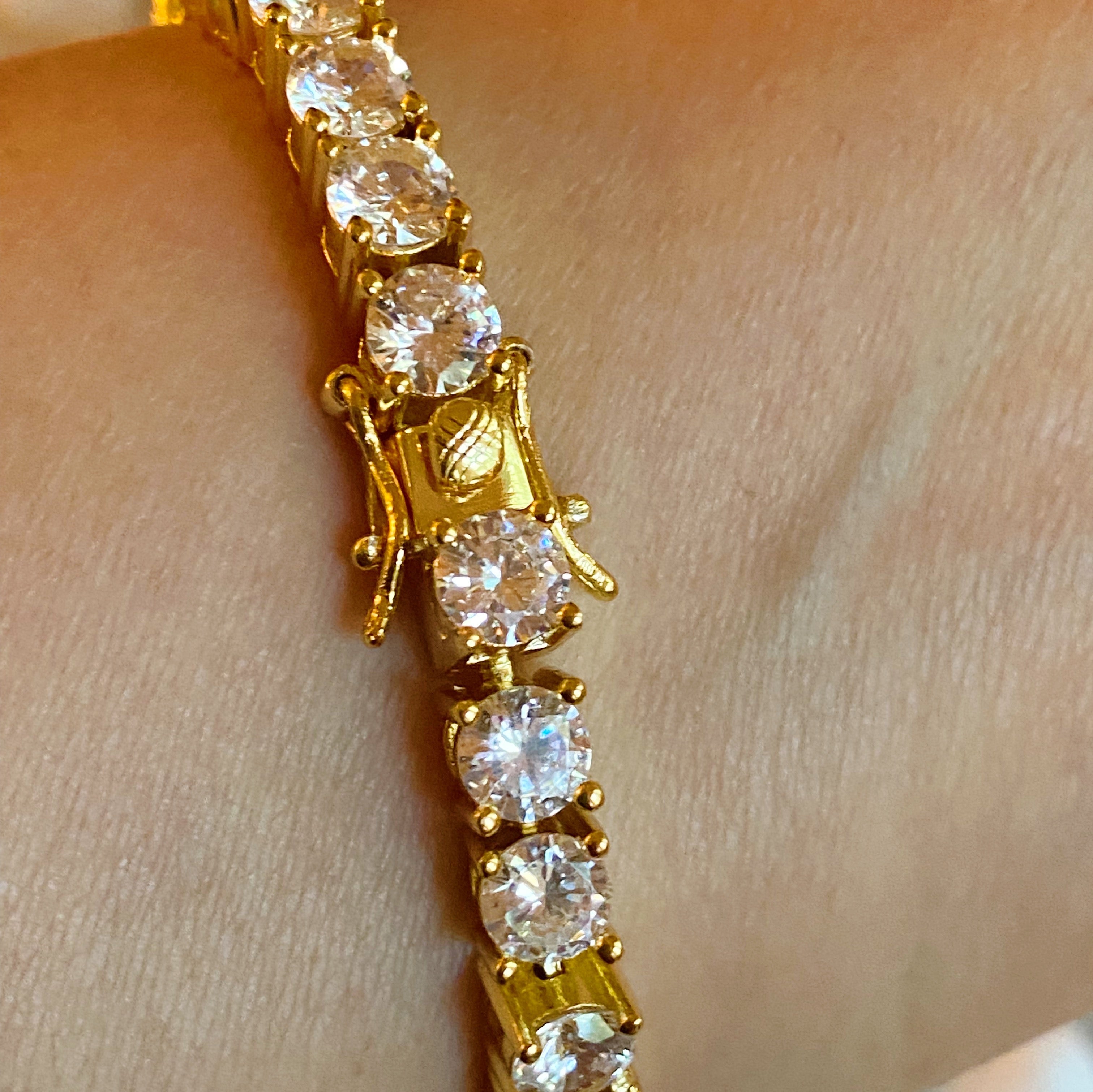 Absolutely beautiful, just like real diamonds, tennis bracelet. Each link was put together by hand and it created detailed high quality shiny bracelet. Perfect for everyday wear and any occasions! Great to layer with other bracelets.