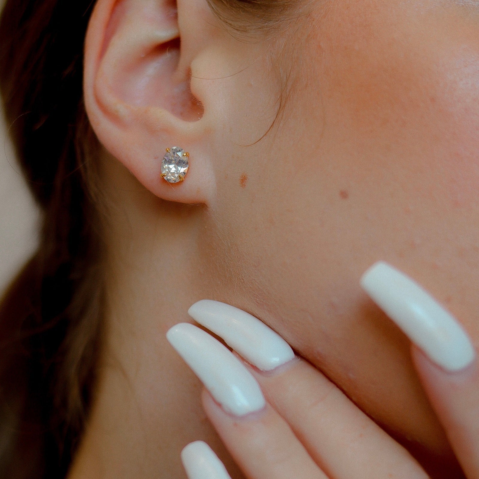 These beautiful oval-cut cubic zirconia stud earrings are a must-have for your jewelry collection.