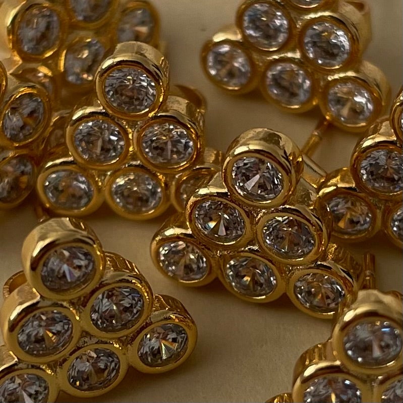 6 cubic zirconia stones that create the shape of a pyramid